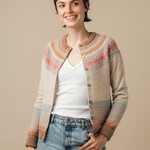 Rund um den Hals bildet das ikonische Alpine-Fair-Isle-Muster einen farbenreichen Kranz, der der Strickjacke ihren unverwechselbaren Charakter verleiht. Saum und Bündchen wiederholen dieses raffinierte Farbspiel, wodurch das Ganze in perfekter Balance bleibt. Die weiche beige Basis schenkt Ruhe und lässt die warmen Akzente wunderschön zur Geltung kommen.