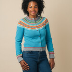 Die funkelnde Eribé Alpine Short Cardigan Aqua strahlt in klarem Türkisblau mit raffiniertem Fair-Isle-Muster. Gefertigt aus 100% Merinowolle und mit Perlmuttknöpfen versehen. Leicht, energiegeladen und frisch wie klares Wasser.