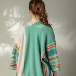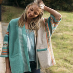 Vielseitige Eribé Strickjacke, die auf zwei Arten getragen werden kann. Diese „Überwurf“ Strickjacke kombiniert die charakteristischen Fairisle-Muster in einem Farbverlauf und einfarbigen Blockfarben. Die Strickjacke hat Taschen und kann auch kopfüber getragen werden. Die Eribé Strickjacke besteht aus 100% Merinowolle.
