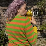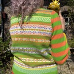 Dieser wendbare Eribé Pullover ist nach einer wunderschönen und farbenfrohen Gegend in den Scottish Borders benannt. Durch die aufregenden Fairisle- und Streifenkombinationen entsteht ein besonderes Kleidungsstück.