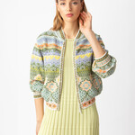 Magische IVKO Jacke mit vielen verschiedenen Mustern. Dadurch entsteht ein eindrucksvolles Ganzes, an dessen Anblick man sich nie sattsehen kann. Die IVKO Jacke besteht aus 64% Baumwolle, 29% Leinen, 6% Polyamid und 1% Elasthan.