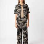 Romantische IVKO Hose mit wunderschönem Motiv einer Gartenszene. Die Hose hat einen elastischen Bund und weite Beine. Die IVKO Hose besteht aus 59% Viskose, 34% Leinen und 7% Polyamid.