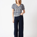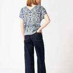 Magisches IVKO Shirt mit vielen verschiedenen Mustern. Das Shirt hat vorne und hinten einen V-Ausschnitt. Das IVKO Shirt besteht aus 60% Baumwolle, 33% Leinen und 7% Polyamid.