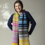 This sublime Eribé scarf is named after a beautiful and colourful area in the Scottish Borders. The exciting fairisle motifs set in stripe patterns create a special garment. The Eribé scarf is made of 100% merino wool.