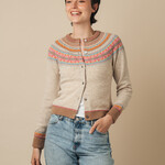 The soft Eribé Alpine Short Cardigan Romance feels like the golden hour captured in knitwear. Its warm light base is framed by shades of peach, coral, powder pink and gentle aqua – colours reminiscent of an evening sky as the sun slowly sets and everything glows with warmth.