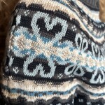 The deep blue tones of this cardigan recall open water and endless horizons. The Fairisle yoke suggests rippling waves and subtle nautical details, while the refined colour transitions create depth and movement. The distinctive textured pattern gives each piece an artisanal character and enhances its maritime spirit.