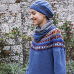 This super soft Eribé sweater is made from a textured knit and features a striking graphic pattern. This sweater is finished with a rolled edge around the neck and with comfortable ribbed trims. The Eribé sweater is made of 100% merino wool.