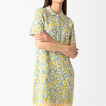 Artistic IVKO dress, on which various geometric patterns are processed into a sparkling whole. The dress has a collar and closes with buttons. The IVKO dress is made of 70% cotton, 29% viscose and 1% elastane.