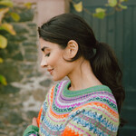 Les tons chauds des roses, les accents frais et les nuances douces évoquent un rosier en pleine floraison, donnant au pull une allure romantique et charmante qui se marie parfaitement avec des jupes ou pantalons taille haute.