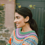 Le Alpine Short Sweater Bellarose est une véritable histoire de couleurs — un mélange de laine, d’artisanat et de la douce magie d’un jardin rempli de roses orangées.