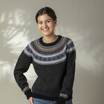 La mystérieuse Eribé Alpine Short Sweater Pegasus associe un anthracite profond à des tons bleus et naturels dans le motif iconique Fair Isle. Confectionnée en 100% laine mérinos. Compacte, confortable et moderne avec du caractère.
