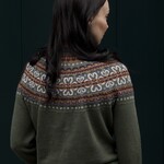 Alors que les récifs tropicaux sont connus pour leurs couleurs éclatantes, les récifs écossais possèdent une beauté subtile et terreuse. Le vert est l’une des couleurs de base d’un récif en bonne santé — une teinte créée par les algues essentielles à la survie de l’écosystème. Dans ce gilet, ce vert naturel constitue la base : calme, puissant et en équilibre avec l’empiècement Fair Isle caractéristique.