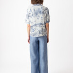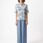 Shirt romantique IVKO avec un beau motif d'une scène de jardin. Le shirt a un col et se ferme avec des boutons. Le shirt IVKO est composé de 61% de viscose, 32% de lin et 7% de polyamide.