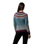 De bijzondere Eribé Alpine Sweater Oldrose neemt u mee naar een vroege ochtend in een stille rozentuin, waar rozenblaadjes langs de rand van een vijver drijven. De blauwgroene kleur van de trui weerspiegelt de kleur van het vijverwater, terwijl zachte rozentinten het geheel een romantische, dromerige sfeer geven.