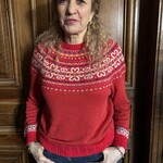 Diezelfde energie leeft voort in deze trui. De diepe roodtint staat voor passie, intense kracht en levenskracht. Het Fairisle-patroon in de schouderpas geeft ritme en structuur, terwijl het kleurenspel zorgt voor diepte en expressie. Het opvallende textuurpatroon geeft elk stuk een ambachtelijk karakter en versterkt de krachtige uitstraling van het ontwerp.