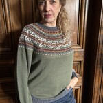 Waar tropische riffen bekendstaan om hun felle kleuren, bezitten Schotse riffen een subtiele, aardse pracht. Groen is één van de basiskleuren van een gezond rif — een tint die ontstaat door de algen die essentieel zijn voor het overleven van het ecosysteem. In deze trui vormt dat natuurlijke groen de basis: rustig, krachtig en in balans met de karakteristieke Fairisle schouderpas.
