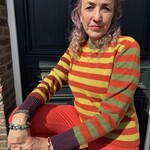 Deze reversible Eribé trui is genoemd naar een prachtig en kleurrijk gebied in de Scottish Borders. De spannende kleur- en strepencombinaties creëren een bijzonder kledingstuk dat op twee manieren te dragen is.