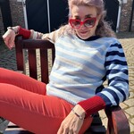 Deze reversible Eribé trui is genoemd naar een prachtig en kleurrijk gebied in de Scottish Borders. De spannende kleur- en strepencombinaties creëren een bijzonder kledingstuk dat op twee manieren te dragen is.