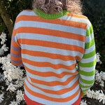 Deze reversible Eribé trui is genoemd naar een prachtig en kleurrijk gebied in de Scottish Borders. De spannende kleur- en strepencombinaties creëren een bijzonder kledingstuk dat op twee manieren te dragen is.