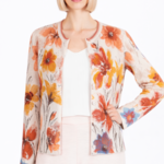 IVKO - Jacquard Cardigan Floral Pattern White Coffee | Artistiek Beige Vest met Kleurrijke Bloemen