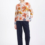 Het schilderachtige IVKO vest met bloemenpatroon doet denken aan een zomers schilderij vol bloemen. Tegen de levendige beige achtergrond verschijnen expressieve bloemen in tinten geel, oranje en blauw. De vormen lijken bijna met een penseel op de stof te zijn aangebracht, waardoor het vest een artistieke en levendige uitstraling krijgt.