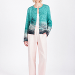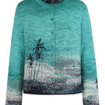 Dit elegante IVKO vest valt op door het subtiele dessin in levendige, harmonieuze kleuren. Het verfijnde patroon met lichte kleurovergangen en een subtiel palmmotief geeft het vest een rustige en vrouwelijke uitstraling.