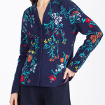 IVKO - Jacquard V-Neck Jacket Floral Pattern Marine | Donkerblauw Zomers Vest met Kleurrijke Bloemen