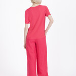 Het shirt is gemaakt van 100% viscose, een materiaal dat bekend staat om zijn zachte, soepele en ademende kwaliteit. De stof valt licht langs het lichaam en draagt comfortabel, waardoor het shirt een ideale keuze is voor warmere dagen.