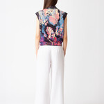 Spectaculair IVKO jasje met een prachtig patroon dat het reliëf van onze aarde laat zien. Het kleurenpatroon geeft de nacht weer. Het jasje heeft zakken en sluit met een rits. Het mouwloze IVKO jasje is gemaakt van 77% katoen, 20% viscose, 2% polyamide en 1% elastaan.