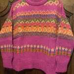 Deze robuuste MANUELA BEDFORD trui is grofgebreid van 89% Peruaanse alpacawol en 11% polyamide. Het levendige kleurenpalet met fuchsia, oranje, groen en violet geeft de trui een uitgesproken karakter.