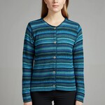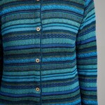 MANUELA BEDFORD Rayas Cardigan Turquoise | Blauw Gestreept Vest van 100% Peruaanse Alpacawol
